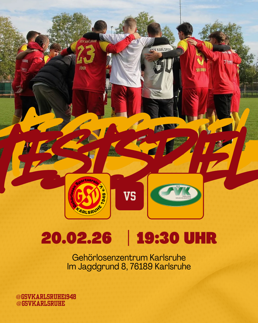 Eine Woche vor dem Heimkracher um den 1. Platz in der Liga gegen den GSV Düsseldorf testen wir im heimischen Gehörlosen Zentrum am Freitagabend (20.02.26) um 19:30 Uhr gegen den A-Ligisten SVK Beiertheim.