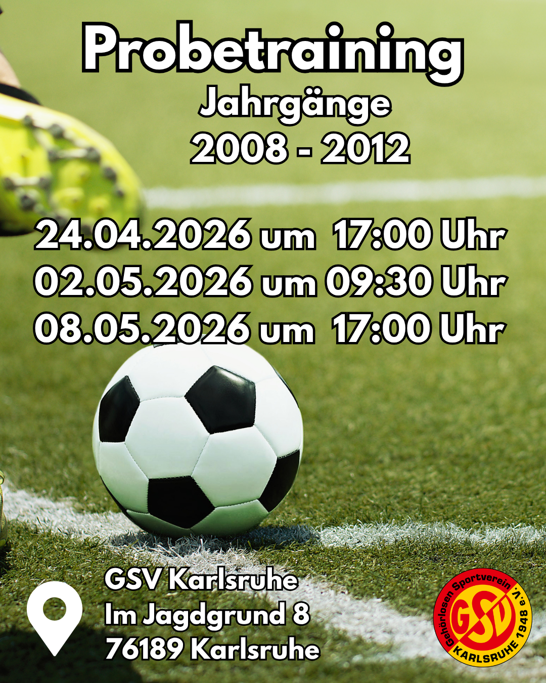 Unser engagiertes Trainerteam rund um Robin Bayer und Julia Öfele freut sich darauf, euch auf unserem Platz (Im Jagdgrund 8,76189 Karlsruhe) zu begrüßen und gemeinsam mit euch durchzustarten.