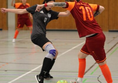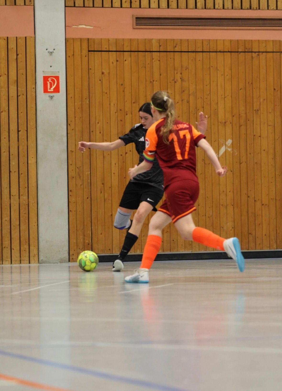 Am Donnerstag hieß es früh aufstehen: Bereits um 7 Uhr gab es Frühstück, bevor wir zur Halle aufbrachen. In der Kabine gab es die letzten taktischen Inputs – dann waren wir bereit für unser erstes Gruppenspiel gegen das starke Team von Real e Non Solo, einem der Turnierfavoriten. Die Gegnerinnen starteten druckvoll, doch unsere Defensive hielt stand. Kurz vor der Halbzeit gelang Alena nach einem perfekten Angriff der Führungstreffer – Jubel, Erstaunen und pure Emotion auf unserer Seite. Mit einer 1:0-Führung ging es in die Pause. Doch in der zweiten Hälfte schlichen sich Unkonzentriertheiten ein – in nur drei Minuten kassierten wir zwei Gegentore. Doch wir gaben nicht auf. Nach einer starken Balleroberung von Anna und einem präzisen Pass auf Julio, die mit einem eleganten Dribbling die gegnerische Verteidigung und Torhüterin ausspielte und am zweiten Pfosten Alena bediente, fiel das umjubelte Ausgleichstor zum 2:2 – der verdiente Endstand einer intensiven Partie.
